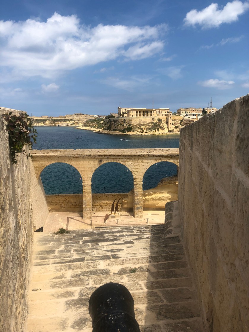 der Blick aus dem Bus zeigt ein Fort, man könnte meinen, ganz Malta ist ein Fort. Die Lage mitten im Mittelmeer hat schon immer Begehrlichkeiten geweckt, so waren hier Phönizier, Carthager, Römer, Spanier, Franzosen, Türken, Engländer und natürlich auch die Deutschen, die die Insel im 2. Weltkrieg heftig bomardierten und selbst das Fort San Angelo in Vittoriosa unter Beschuss nahmen.