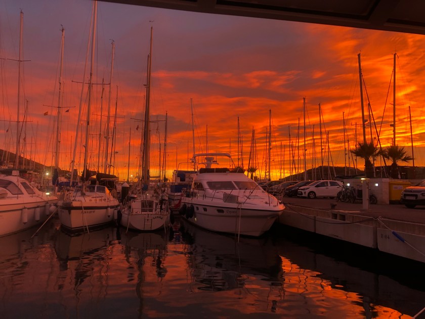 Morgens stehen die Reiniging des Dhingies, der Luken und der Abdeckungen auf dem Programm. Da am Abend Gabriele, eine Nachbarin zum Essen kommt, muss Fisch besorgt werden, und da ich scheinbar noch nicht genug Aktion hatte, gehe ich auch noch in die Stadt und suche mir einen Frisör, werde herrlich verwöhnt mit einer Aromamassage und dann zurück in die Pantry. Leider verbringen Gabriele und Thomas nicht den Winter hier, wir haben uns echt gut verstanden, die Beiden segeln nach Almerimar, schade.