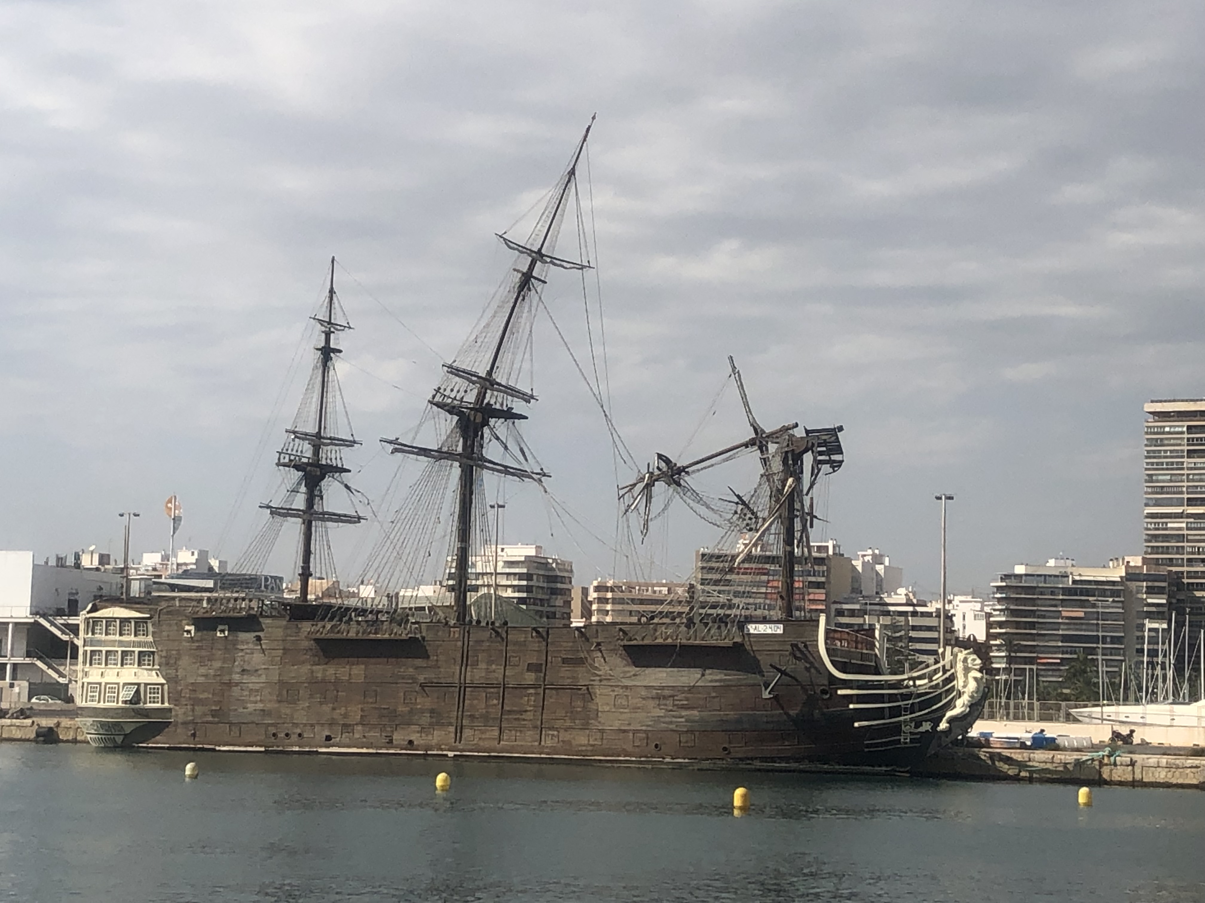 Wir besuchen Freunde in Mazaron und besichtigen gleichzeitig die Werft, wo wir im April einige Arbeiten ausführen lassen werden. Dort liegt eine Galeone, der Nachbau eines alten Seglers, den wir gerne besichtigen.