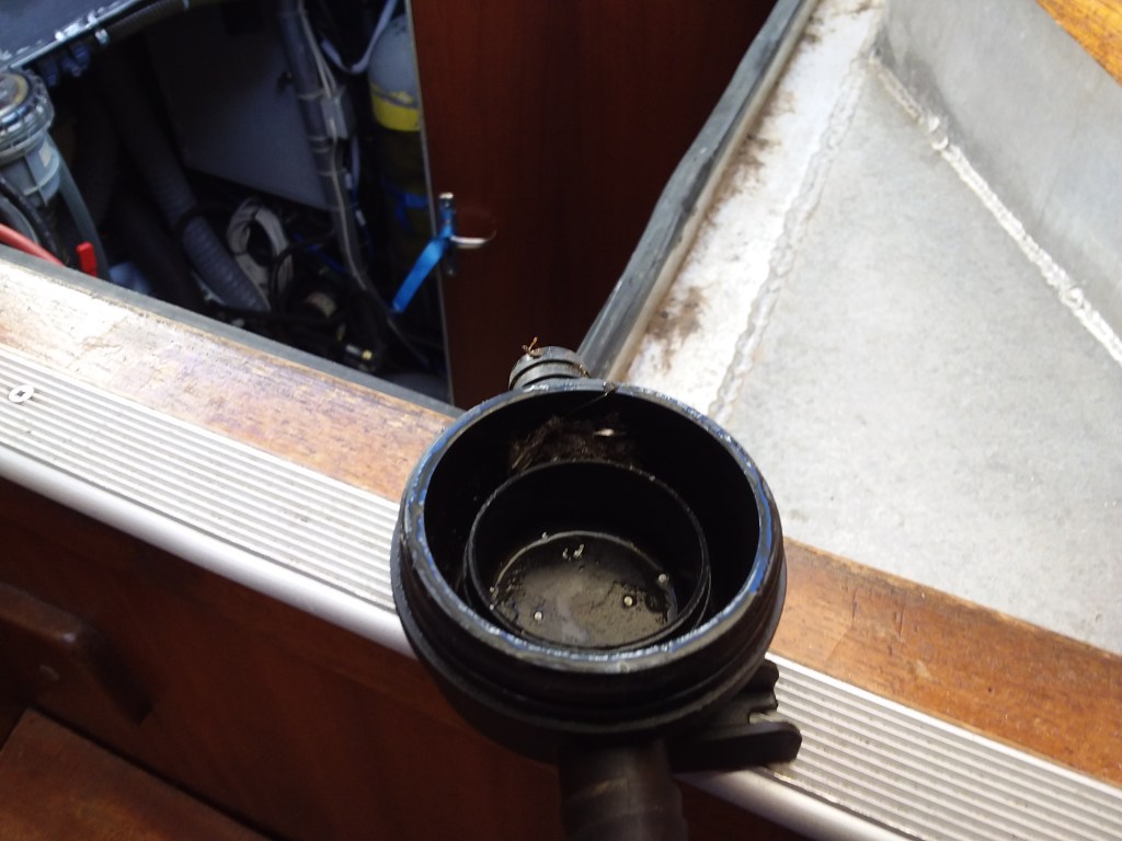 Erste Überraschung, es wird kein Seewasser angesaugt, demzufolge die WC-Spülung nicht funktioniert. Die Ursache waren eine Menge Haare nicht im Filter, nein im Ansaugstutzen. Wir saugen unser Seewasser aus dem gleichen Rohr an, durch welches ein Teil unseres Cockpits entwässert wird, natürlich auch wenn wir dort duschen. Heureka! Wie dahemm. Das hat allerdings eine zeitlang gedauert diese überhaupt erst einmal zu finden.