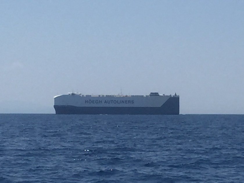 Die Nacht war grenzwertig schwellig, aber wir wußten, das Segel ist am nächsten Tag fertig. So stehen wir die Nacht durch und entscheiden, dass wir weder die Akropoli noch sonst etwas von Athen sehen wollen. Nur weg hier. Rein in den Hafen, Segel entgegen nehmen und weg.  Schon wieder durch das Verkehrstrennungsgebiet vom Hafen Piräus. Das bedeutet, riesige Pötte um uns herum, teilweise 400m lang, Bremsweg 5 km. Wenn Dir solch eine Stadt entgegenkommt, auch 60m breit, dann siehst du nur noch schwarz, Abgase. Wenn Dir von 2 Seiten diese Schiffe entgegenkommen, dann siehst du genau auf dein AIS um zu wissen, gibt es eine Berührung.