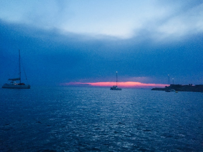 am Abend zuvor ein Gewitter erlebt hatten und im Boot nebenan unseren Nachbarn von Licata Bonni Ellen erkannten. Ok, etwas abgeschweift, zwei Abende verbrachten wir mit den Iren, immer wieder schön, dass wir soviele gemeinsame Gespräche haben.