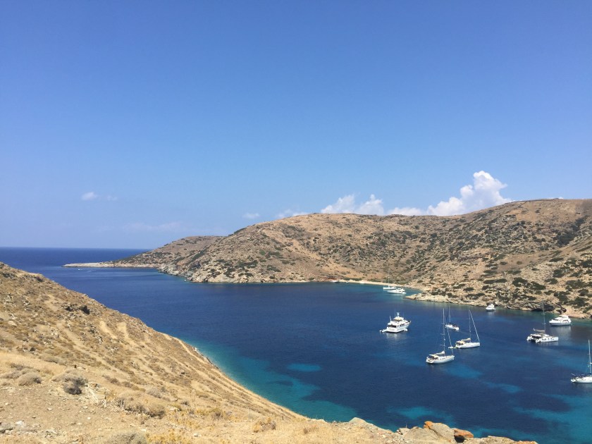 Die Bucht erkundeten wir mit Spaziergängen, schwammen im glasklaren Wasser und bekamen am Mittwoch Abend dann auch noch Besuch: Joe the Sailor war in der Nachbarbucht  und kam auf ein Glas Wein vorbei. Zuvor hatten wir schon ein Treffen in Athen angepeilt, was durch die fixe Reparatur unseres Segels vereitelt wurde.